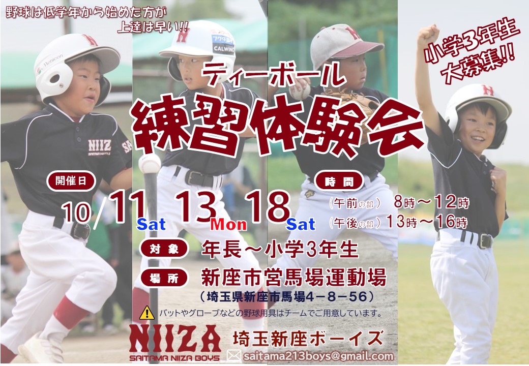 10月のティーボール体験会のお知らせです。