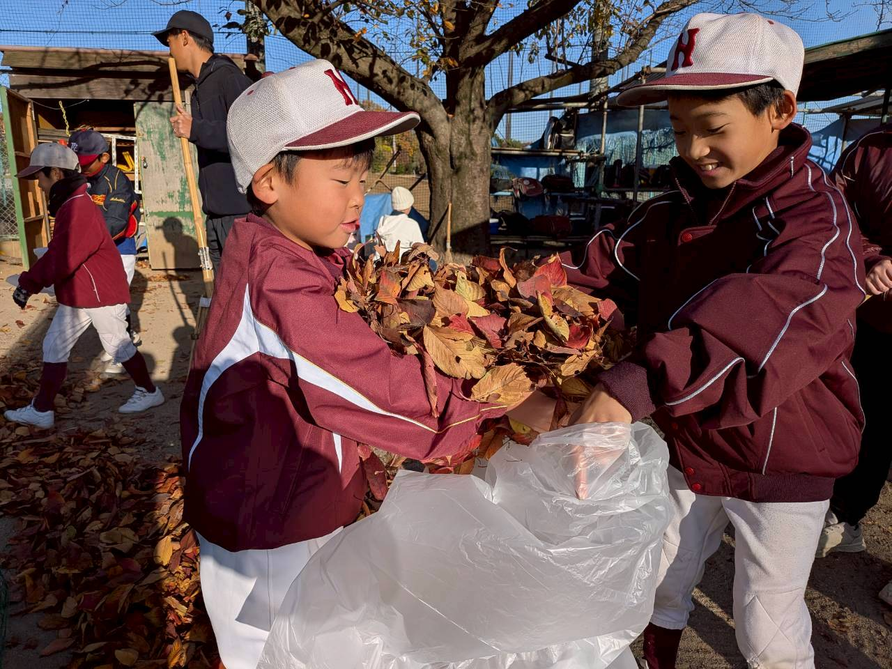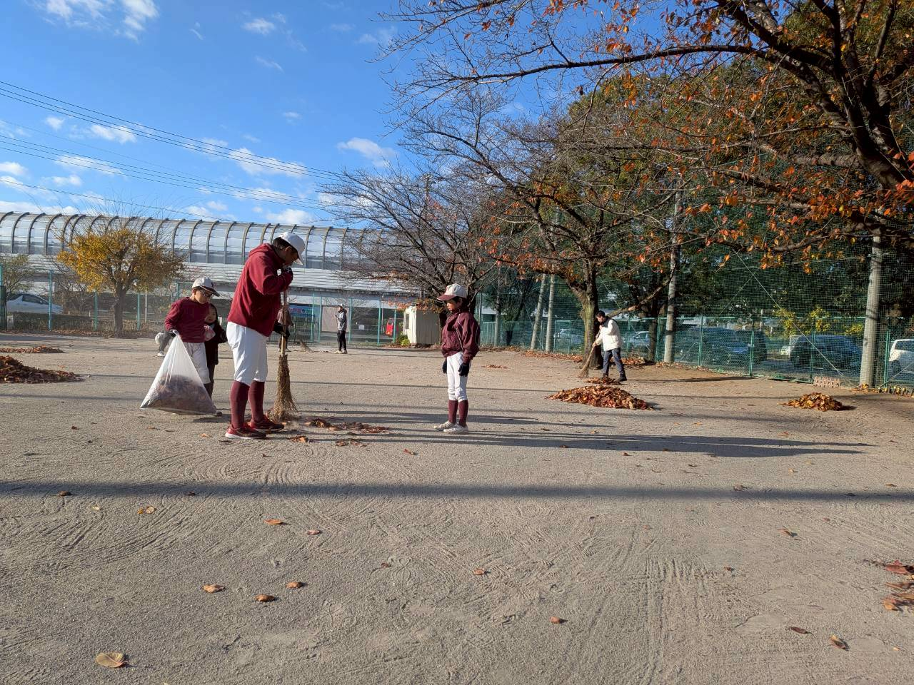 11/29(土)は今年最大級?の落ち葉・落ち葉・落ち葉・・・・、3年生以下選手でがんばって清掃!